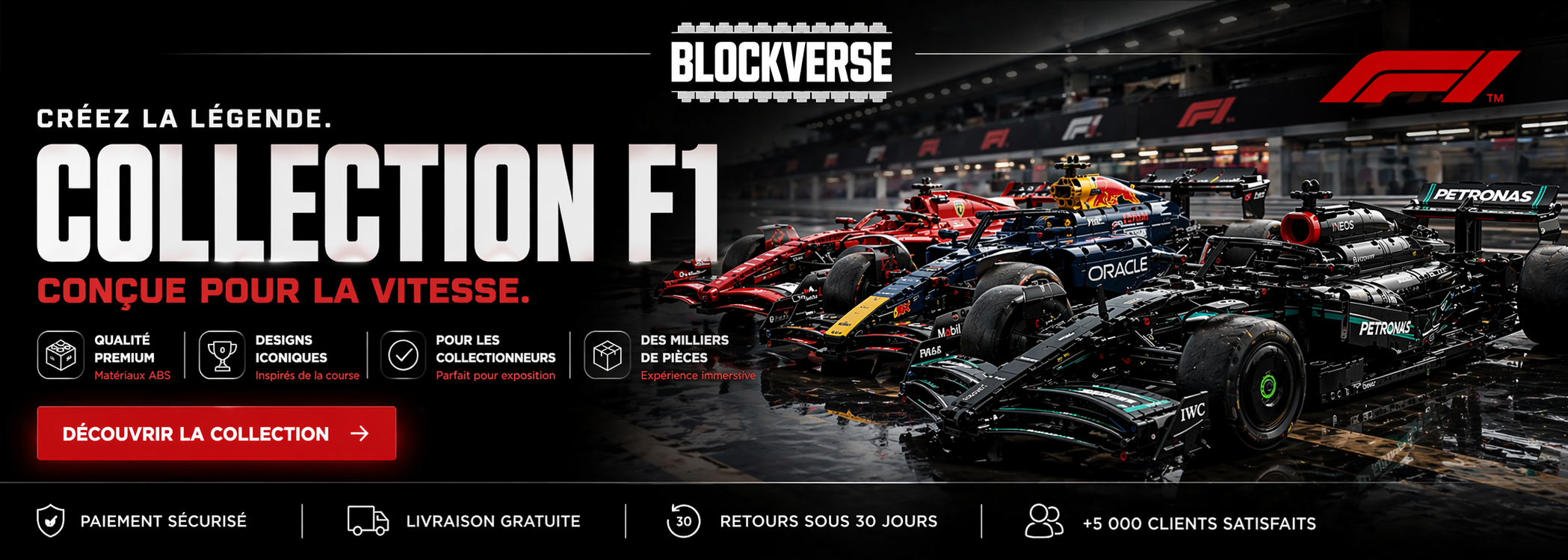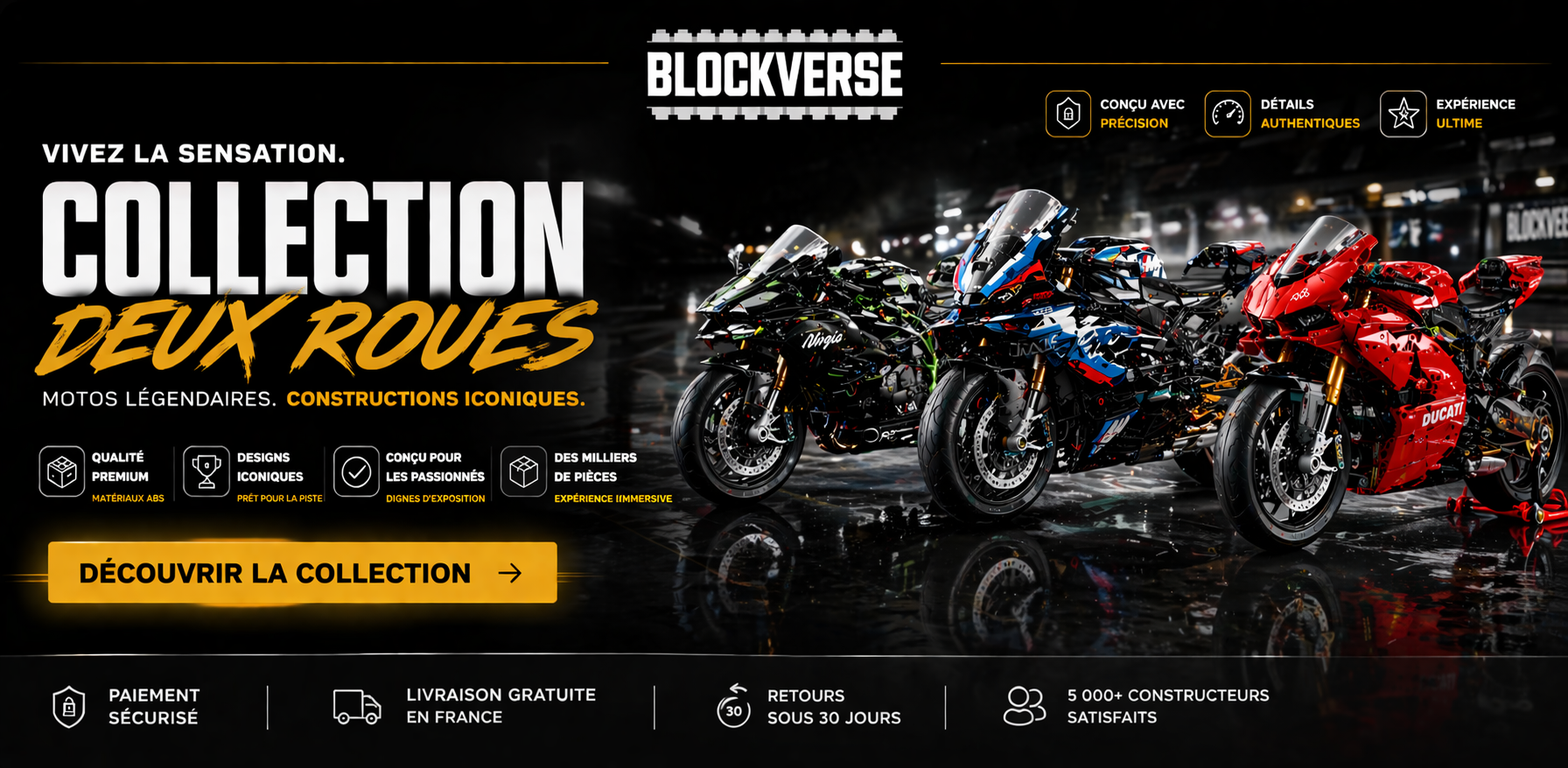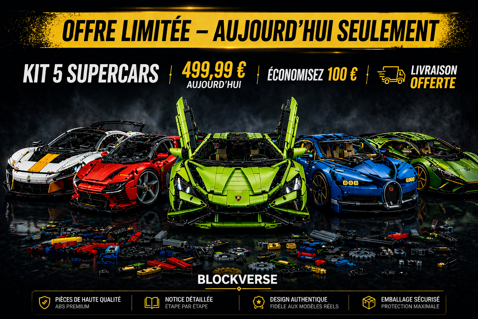 Construisez cinq supercars légendaires dans une collection exclusive. Modèles grand format, présence premium pour exposition et plus de 17 000 pièces de précision.